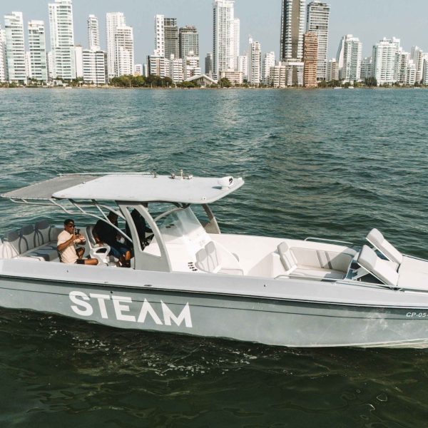 Explora las maravillas del Caribe colombiano con la Todomar 38’, una embarcación que combina potencia, diseño deportivo y comodidad para que vivas un día inolvidable navegando hacia las Islas del Rosario, Barú o disfrutando un atardecer en la bahía de Cartagena.